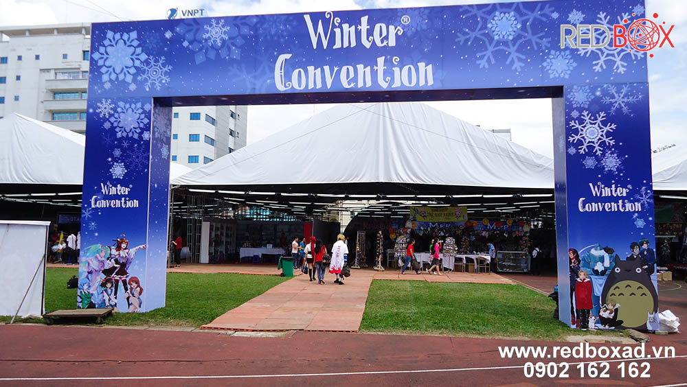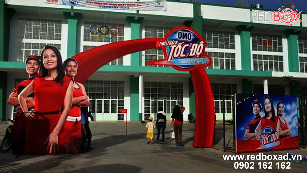 Redboxad.vn nhận thiết kế – sản xuất – thi công lắp đặt cổng chào siêu thị, cổng chào quảng cáo sự kiện event, trang trí cổng chào…